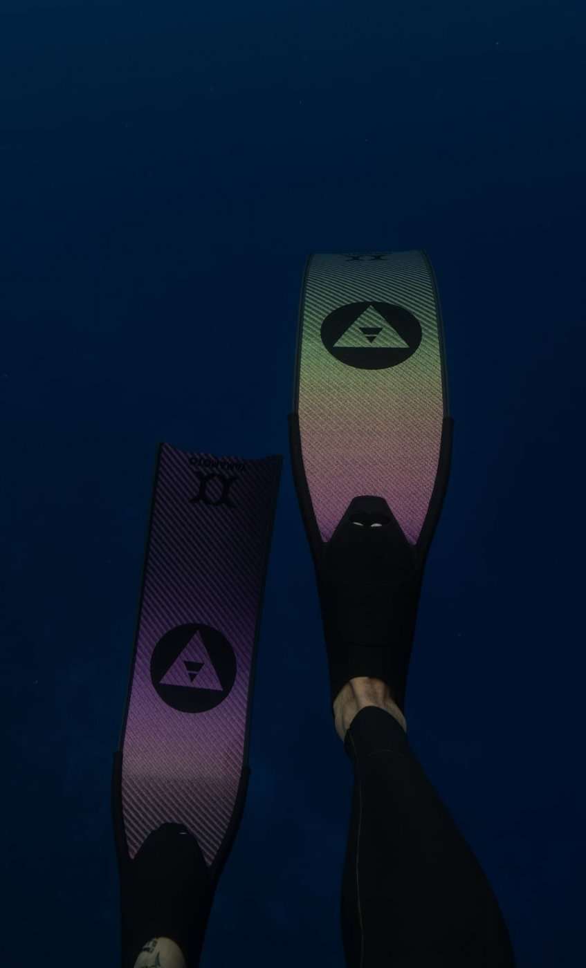 Yamamoto’s Aurora® technology was designed to inject light and color into a world often dimmed by negativity. Its unique, color-shifting properties come to life both above and below the water, transforming every dive into a vibrant, immersive experience. Aurora® fins create a stunning visual effect in underwater content, making freedivers look and feel extraordinary and ensuring they stand out effortlessly. When combined with an Aurora® wetsuit, the result is a captivating, otherworldly display that’s impossible to overlook—a truly unique and mesmerizing experience for both the diver and those watching.