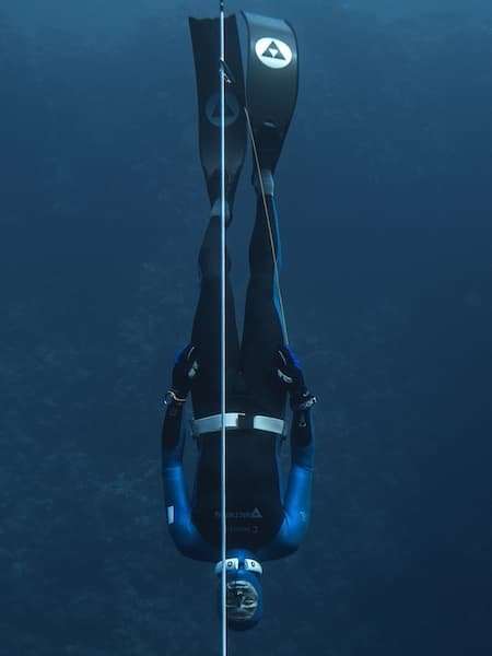 Traditionally, freedivers and spearos wear a belt with weight around their waist to set their buoyancy as needed. However, when we freedive, we want to place the weights in the most efficient position on our body. Compared to the use of a weight belt, a neck weight has significant advantages. Why? The weight is below our lungs during the descent, pulling us down, and resulting in an effortless dive, especially while freefalling.